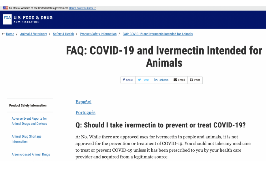 The lawsuit cites several instances where the FDA interfered with the doctors’ practice of medicine and violated the law, including the Federal Food, Drug, and Cosmetic Act. Included as evidence in the lawsuit are the FDA webpage titled “Why You Should Not Use Ivermectin to Treat or Prevent COVID-19”; a post with a link to the page on Twitter saying: “You are not a horse. You are not a cow. Seriously, y’all. Stop it.”; another post stating: “Hold your horses, y’all. Ivermectin may be trending, but it still isn’t authorized or approved to treat COVID-19.” In a separate page, the FDA said: “Q: Should I take ivermectin to prevent or treat COVID-19? A: No.” The court is being petitioned to rule the actions unlawful and bar the FDA from directing or opining as to whether ivermectin should be used to treat COVID-19.